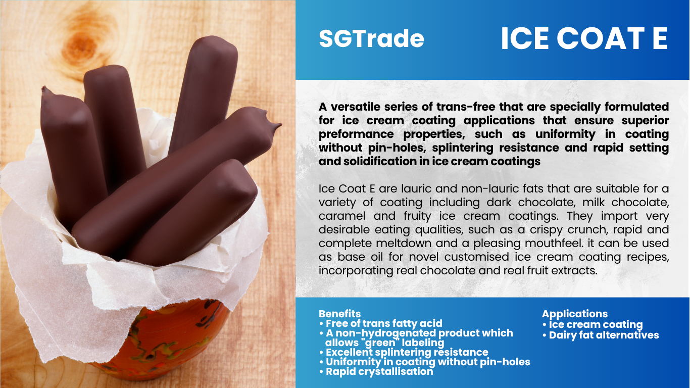 Summit Global Trade provides palm oil–based ice cream fats and coatings, ensuring smooth texture, rich flavor, and stability, ideal for confectionery and frozen dessert applications.