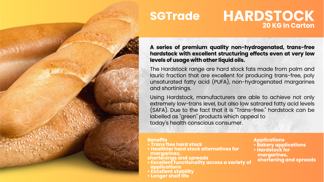 Summit Global Trade offers palm oil–based fats and shortenings for the baking industry, delivering excellent texture, stability, and flavor for breads, pastries, and confectionery products.