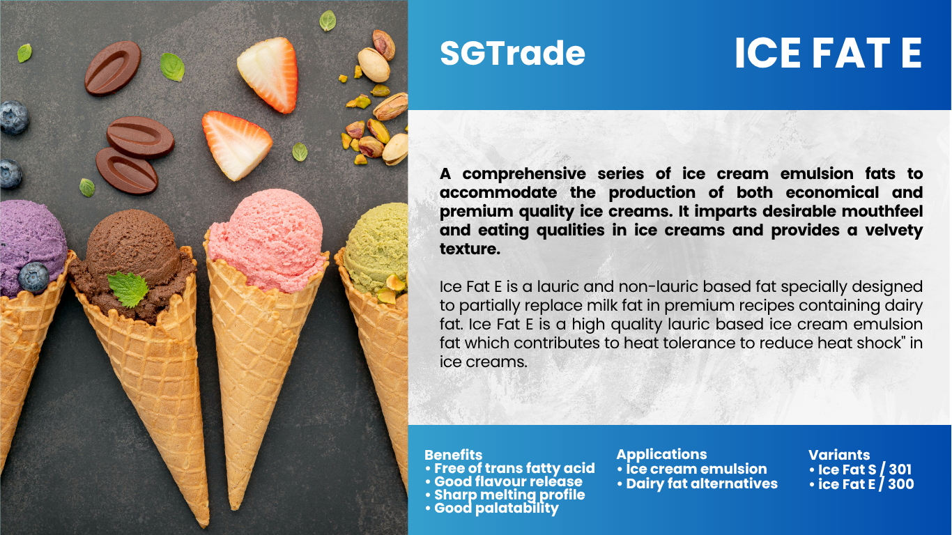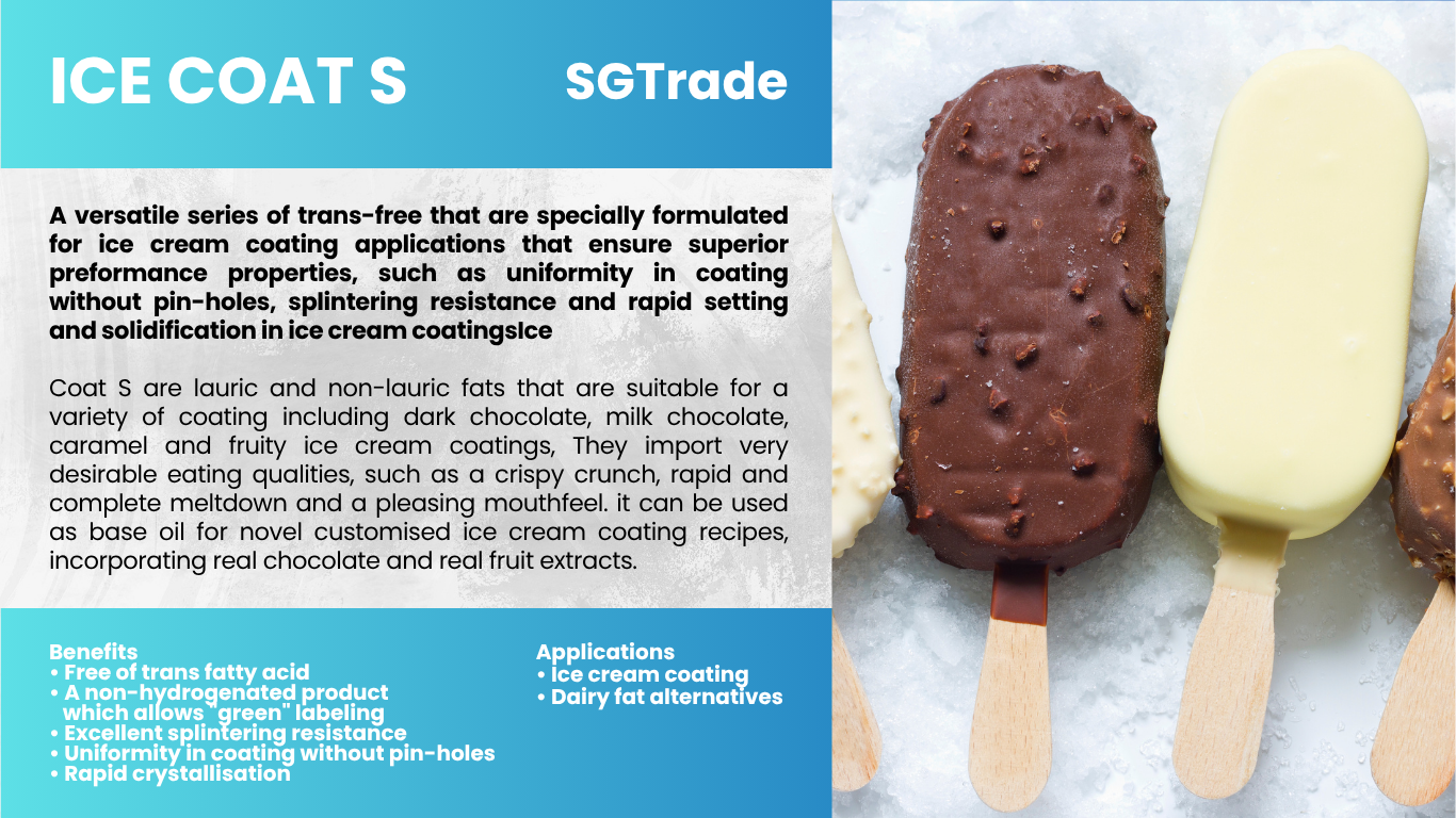 Summit Global Trade provides palm oil–based ice cream fats and coatings, ensuring smooth texture, rich flavor, and stability, ideal for confectionery and frozen dessert applications.